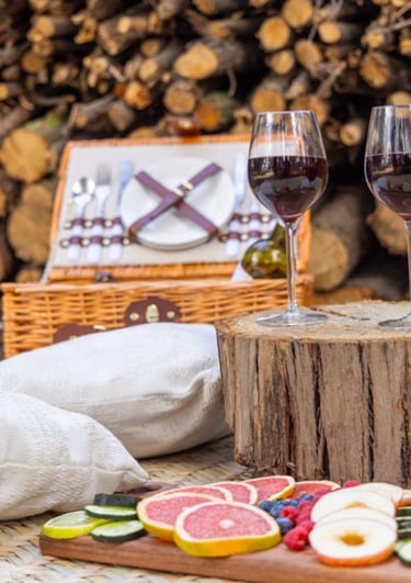 Disfruta de un picnic rodeado de naturaleza, con canastas gourmet y un ambiente acogedor que invita a compartir momentos únicos en medio del bosque.
